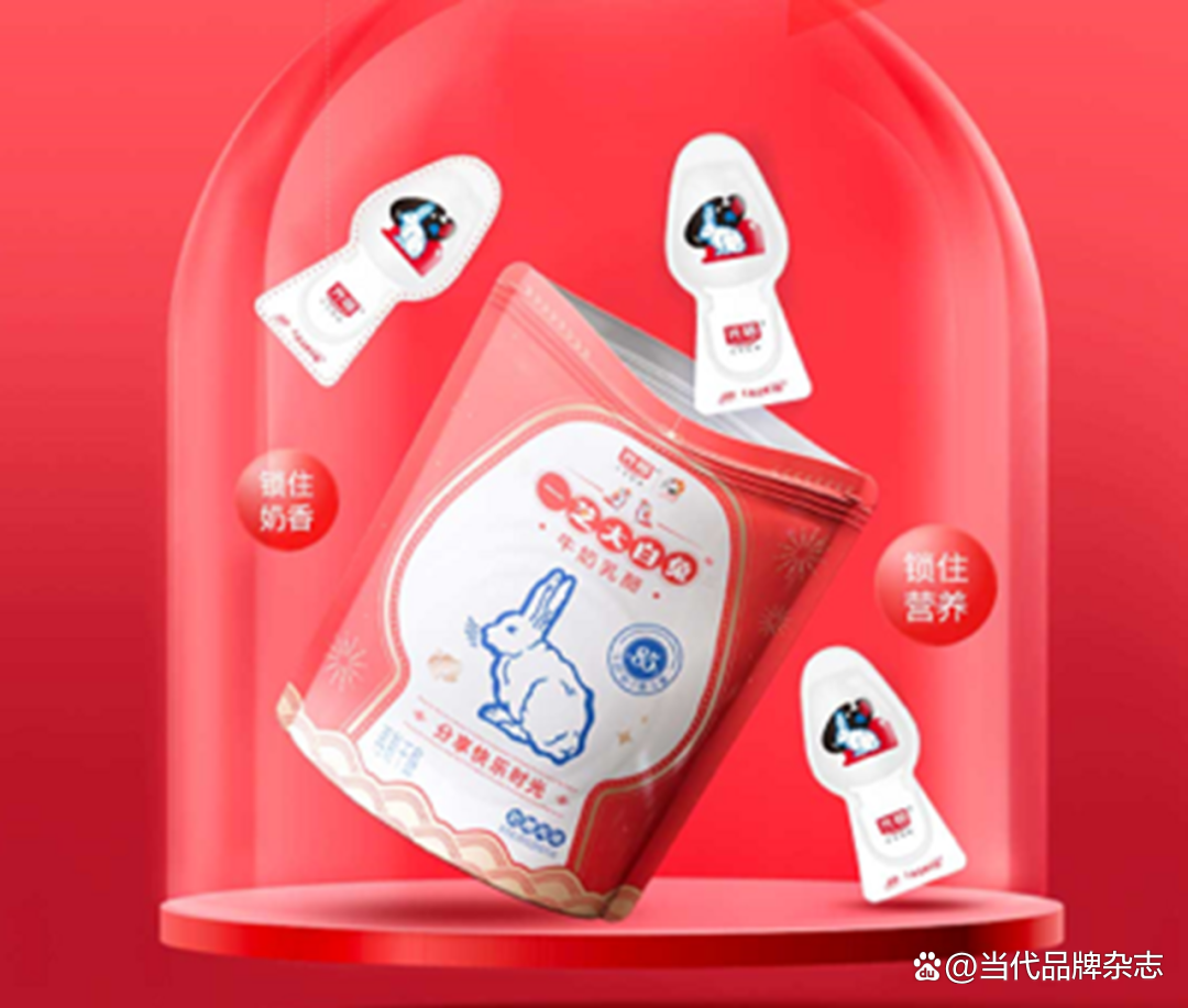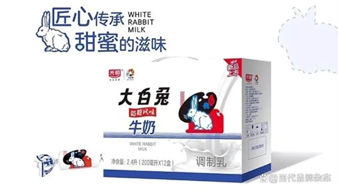 光明乳业与冠生园两大老字号品牌联合推出大白兔奶糖风味牛奶。而后光明和大白兔的联名又推出了新品:“一芝大白兔”牛奶乳酪,主打“童年的味道”,该新品融合了经典大白兔味道,大白兔牛奶添加量≥24%。